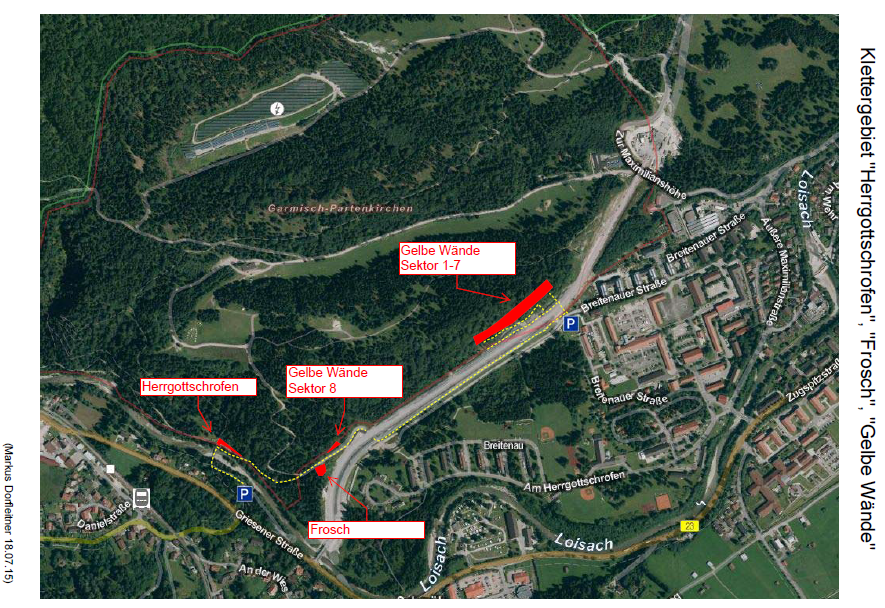 Einst als „Trainingsspielplatz“ der Kletterelite in Garmisch-Partenkirchen täglich beklettert, ist der Klettergarten „Gelbe Wand“ am östlichen Rande Garmischs im Laufe der Jahre doch nahezu vollständig in Vergessenheit geraten. Die Sportklettergruppe um Andreas Hofmann und Markus Dorfleiter haben es sich dieses Jahr auf die Fahne geschrieben, diese „alte Juwel“ wieder herzurichten.