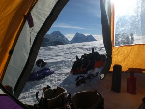 Am frühen Vormittag erreichen wir das zweite Hochlager auf knapp 6000m. Hier ist die Luft bereits verdammt dünn und jede Bewegung fällt einem schwer. Wir bauen die Zelte auf und schlagen die Zeit im Zelt tot. Draußen ist es zwar sonnig aber verdammt windig und kalt. Am Abend ist die Enttäuschung aber erst mal groß. Der Huascaran Süd ist nicht möglich, der Normalweg  zu gefährlich. Aber der Nordgipfel mit seinen 6664m sollte gehen, also doch nicht alles umsonst. An schlafen ist in der Nacht nicht zu denken, man liegt einfach wach und wartet, bis endlich der Morgen da ist. Der Wind tobt die ganze Nacht und ich schaue zwei Mal nach, ob meine Ausrüstung noch in der Apside liegt.